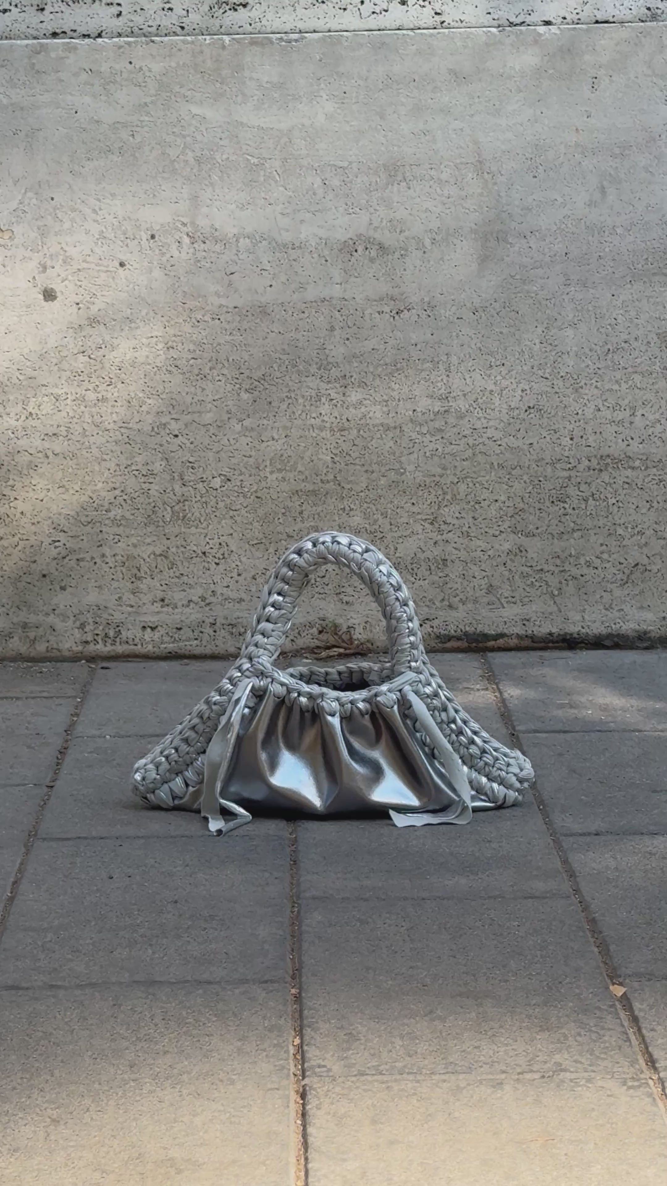 Il modello Claire è nato da un ragionamento sul movimento: desideravo una borsa che cambiasse forma con chi la indossa, che si adattasse naturalmente al corpo e alle occasioni. La sua struttura combina una base in pelle morbida con una cornice in crochet, per creare un contrasto visivo e tattile che la rende viva. Ogni pezzo è unico perché ogni punto è diverso, e ogni pelle racconta la sua storia.